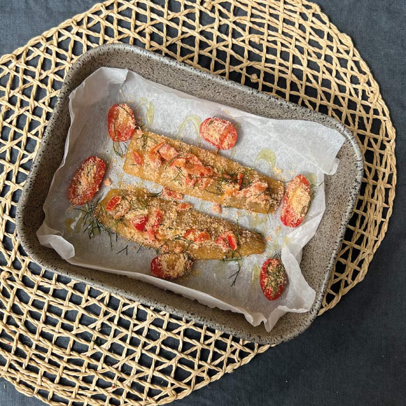 Paniamo i filetti e sistemiamoli in una taglia rivestita di carta forno. Inforniamo a 180° per almeno 20 minuti finché i nostri filetti non saranno ben dorati.